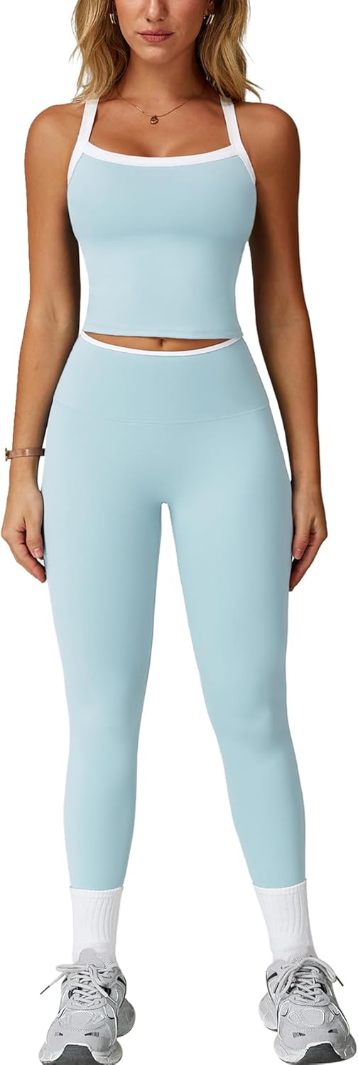 ABOCIW Workout Sets for Women 2 Piece Padded Sports Bra Tank Top High Waist Leggings Sets Gym Yoga Work Out Clothes