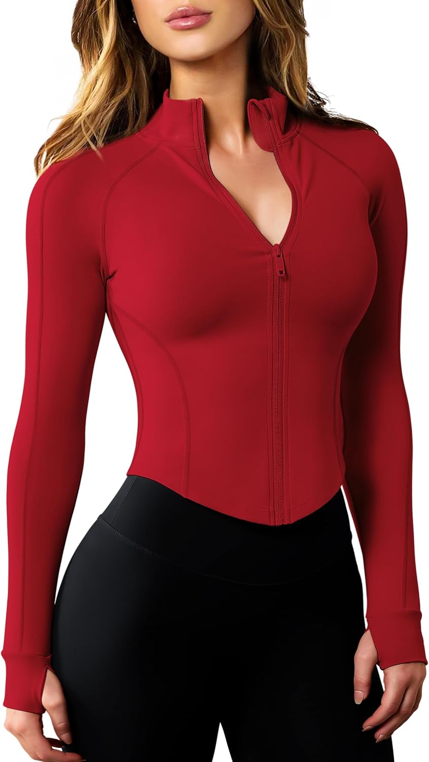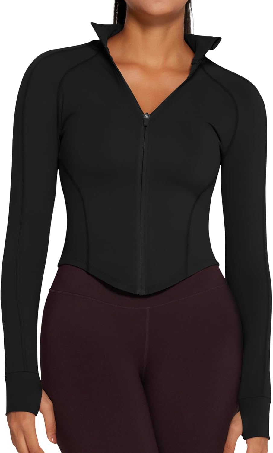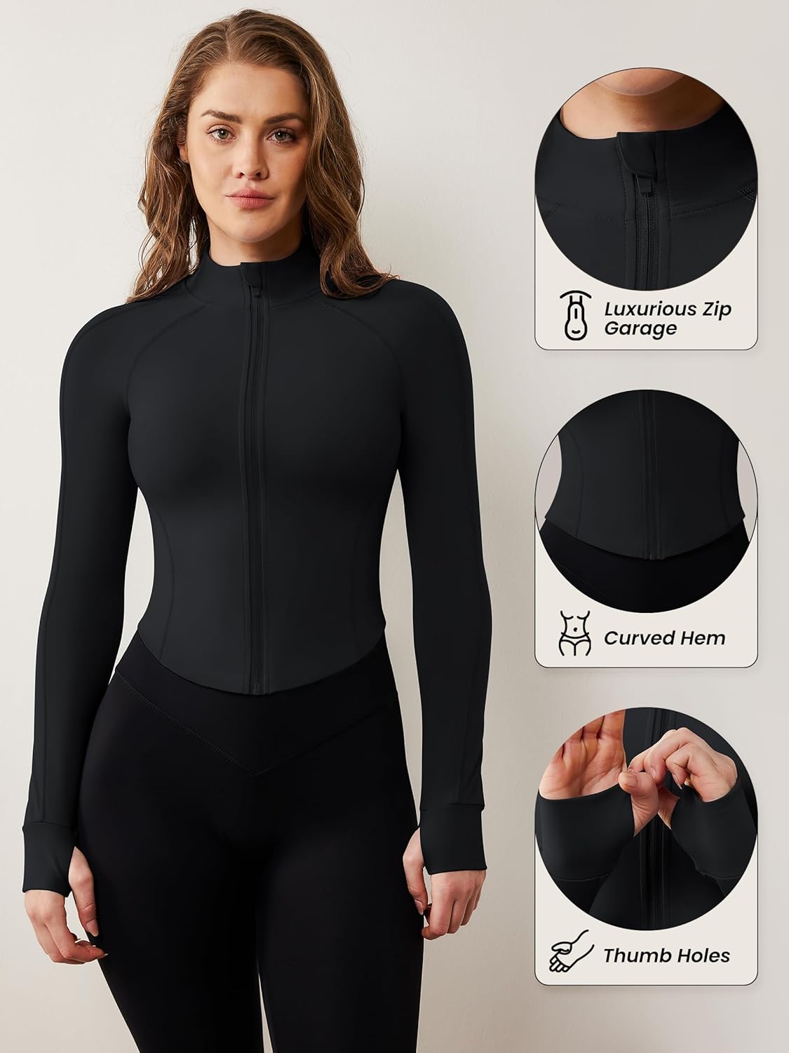 AVGO Women’s Workout Jacket Lightweight Zip Up Cropped Yoga Jackets Slim Fit Athletic Tops with Thumb Holes