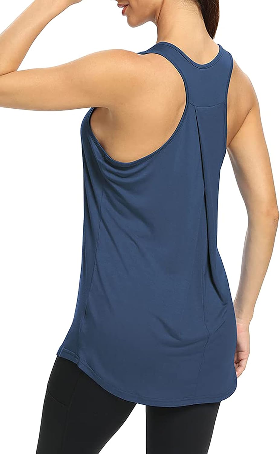 Bestisun Workout Yoga Athletic Shirts Racerback Long Tank Tops Loose fit for Women