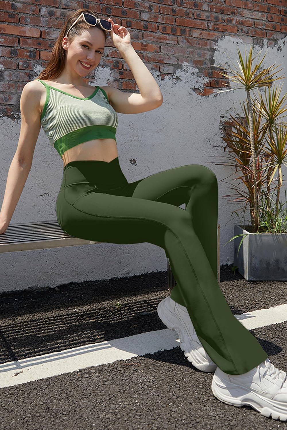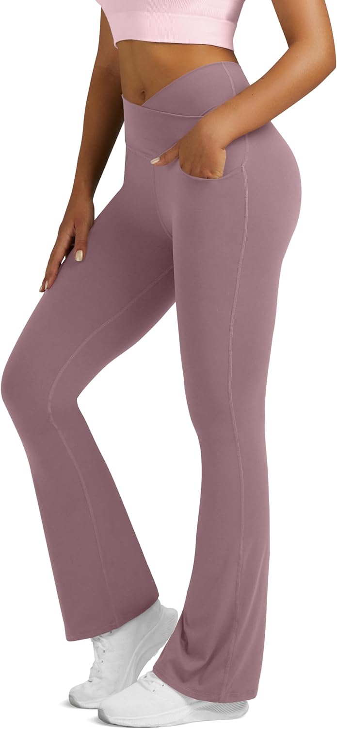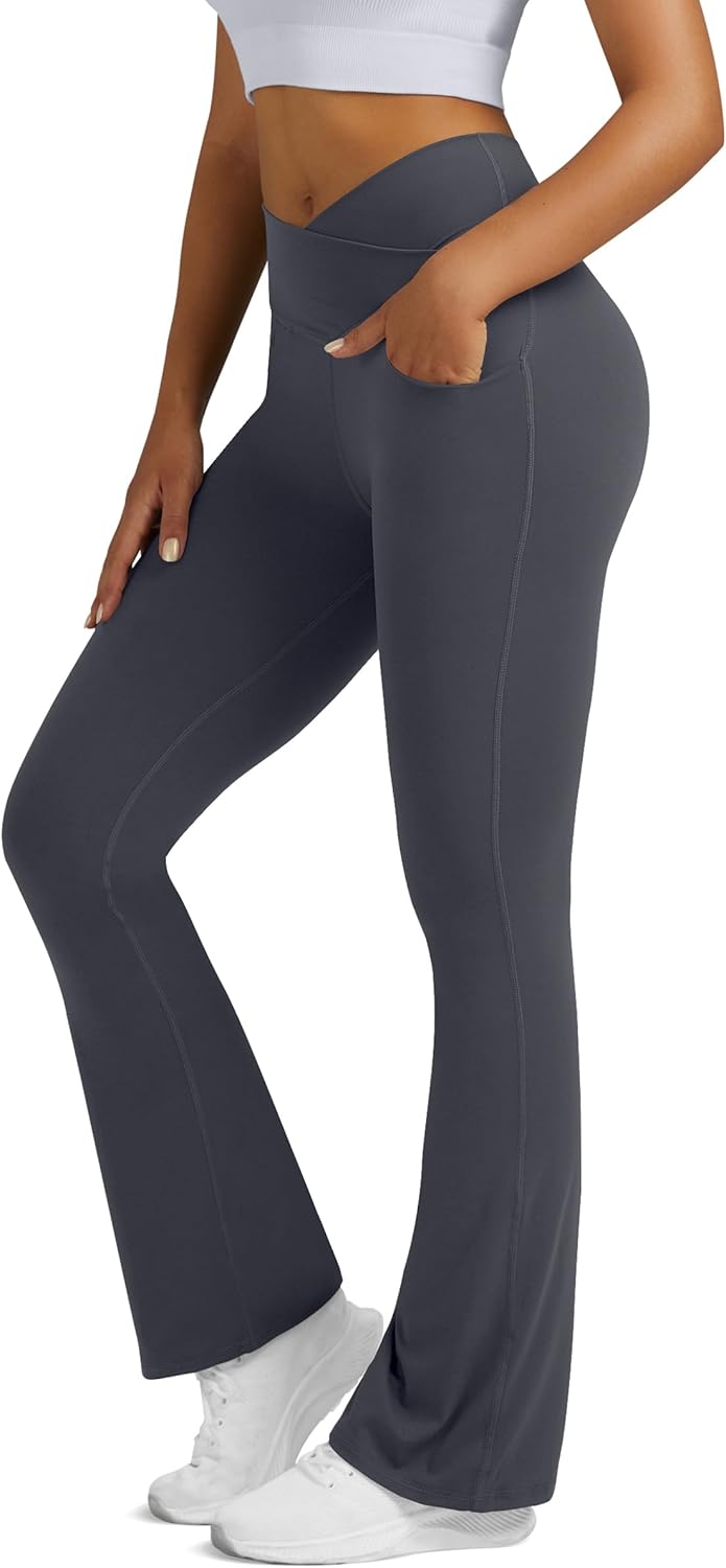 Boerfmian Flare Leggings for Women Yoga Pants with Pockets High Waisted Crossover Flare Leggings Bootcut Casual Yoga Pants