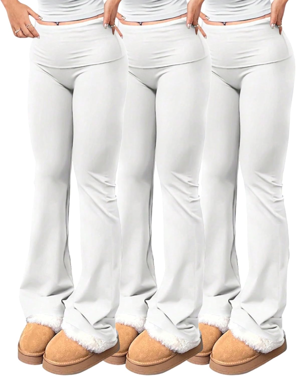FAQUDY Women’s 3 Piece Yoga Pants Set High Waisted Elastic Waist Flare Bootcut Leggings Gym Workout Casual Wear