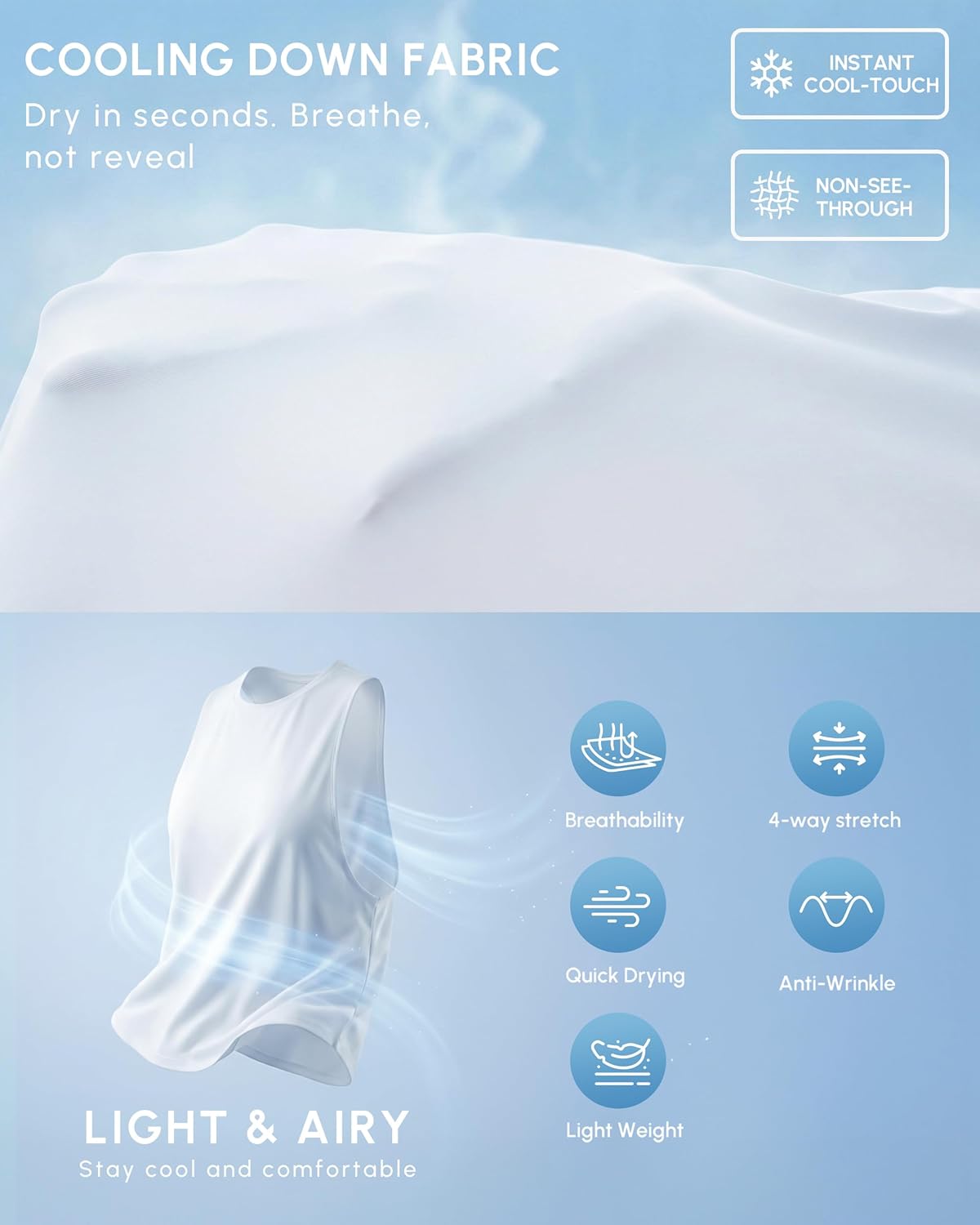 JOYSPELS Workout Tank Tops for Women, Ice Silk Quick Dry Athletic Crop Top, Loose Fit Running Yoga Gym Shirts