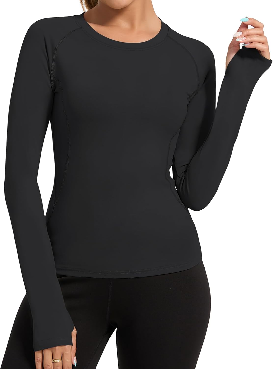 Loovoo Workout Tops for Women 1/2 Pack Long Sleeve Athletic Shirts with Thumb Holes Breathable Quick Dry Yoga T-Shirts