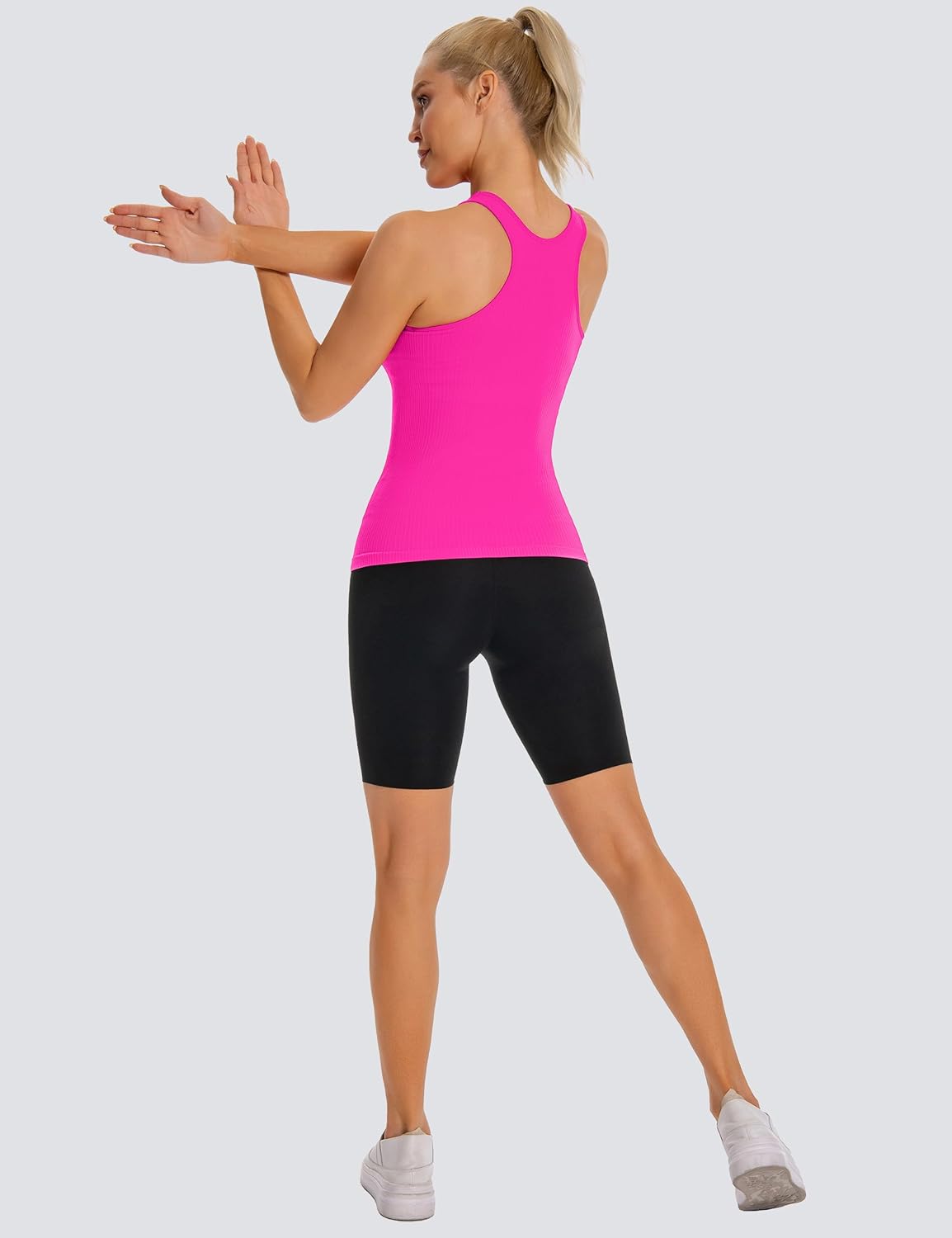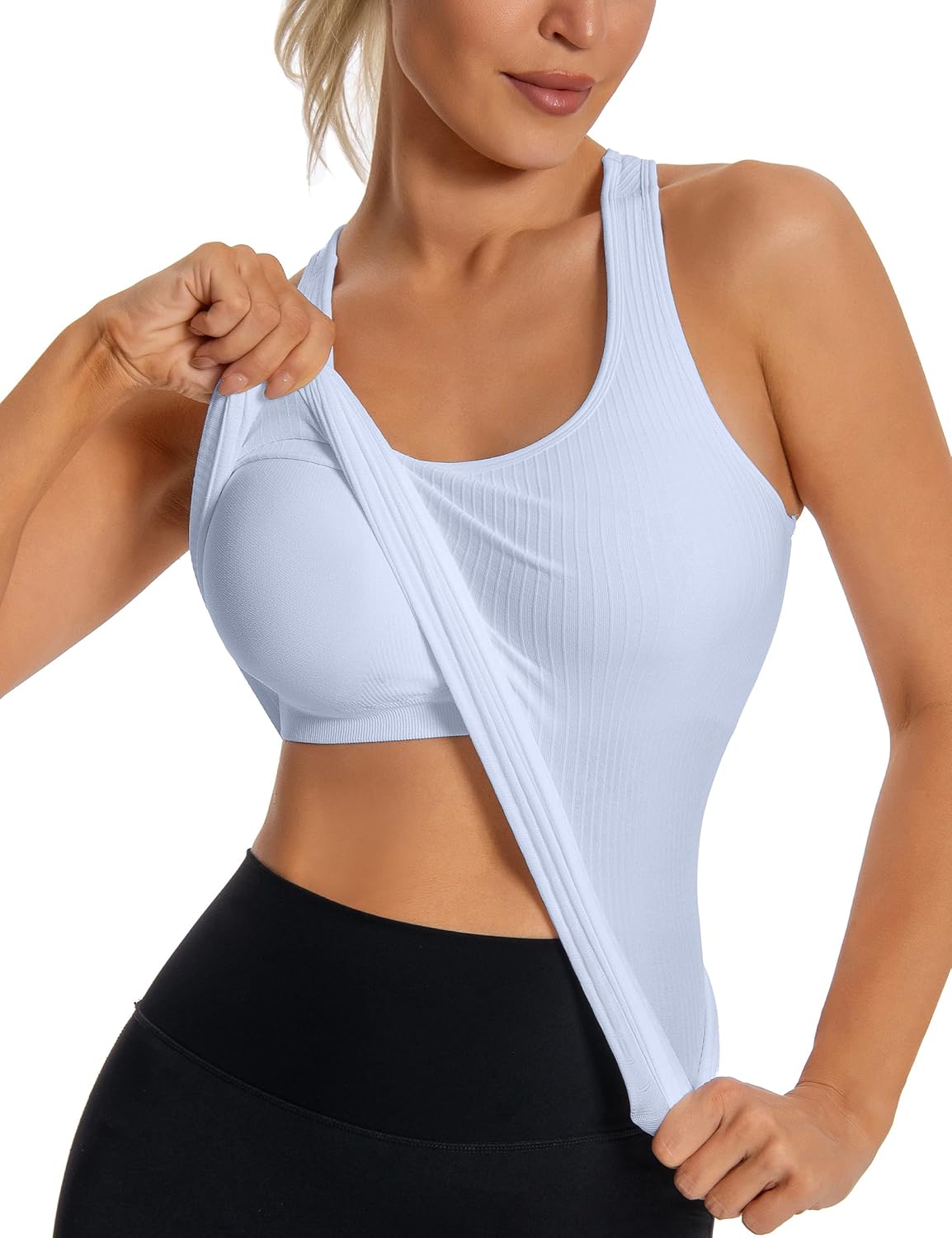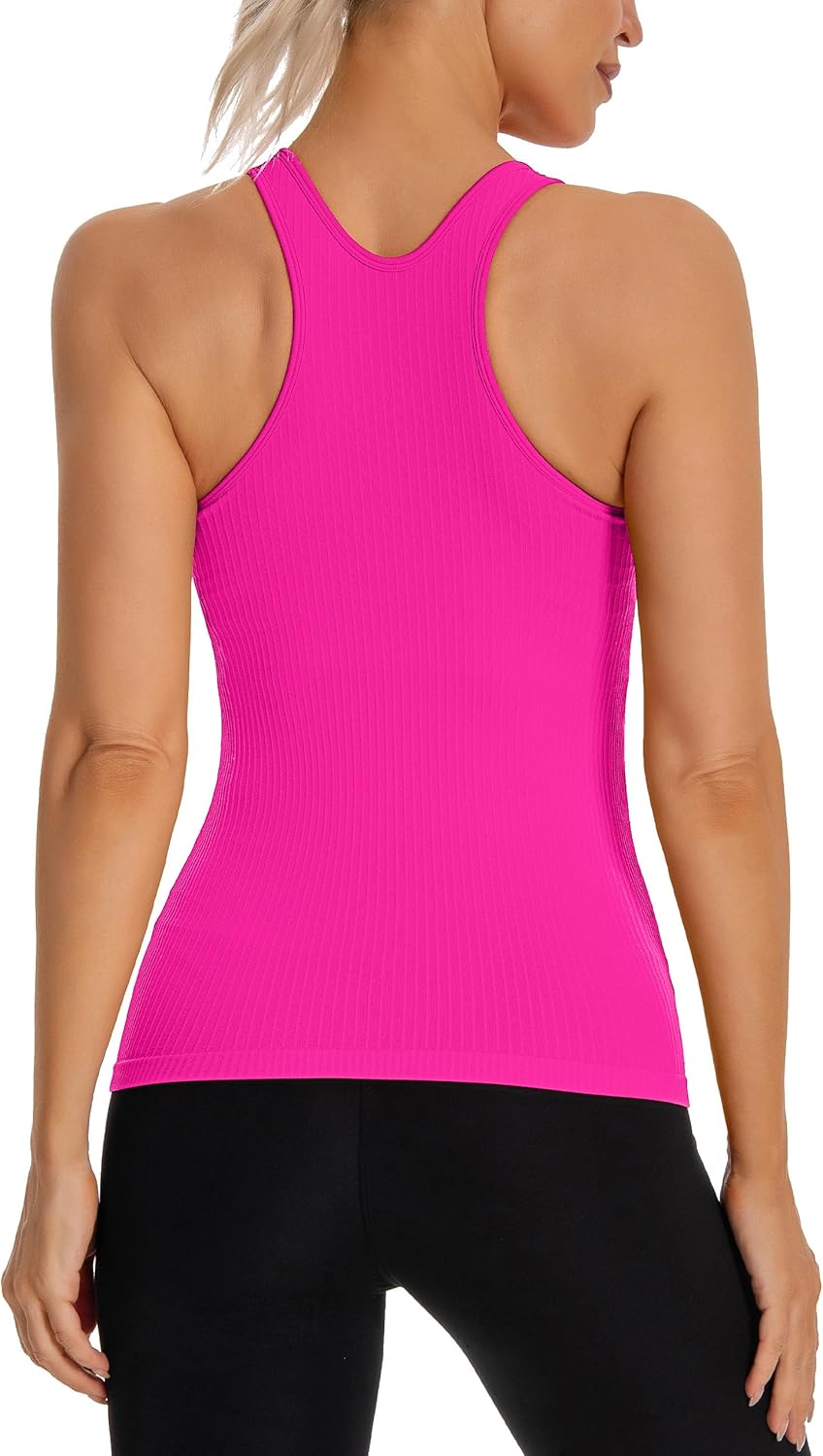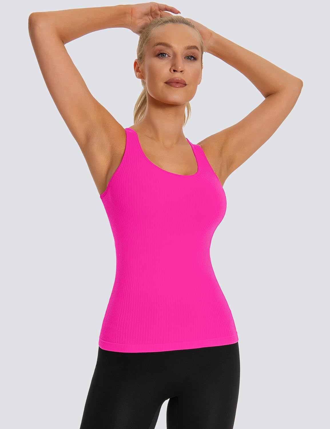ATTRACO Ribbed Workout Tank Tops for Women with Built in Bra Tight Racerback Scoop Neck Athletic Top