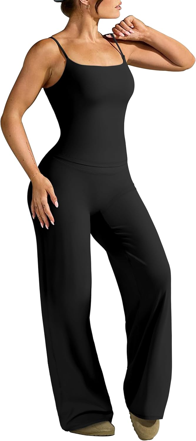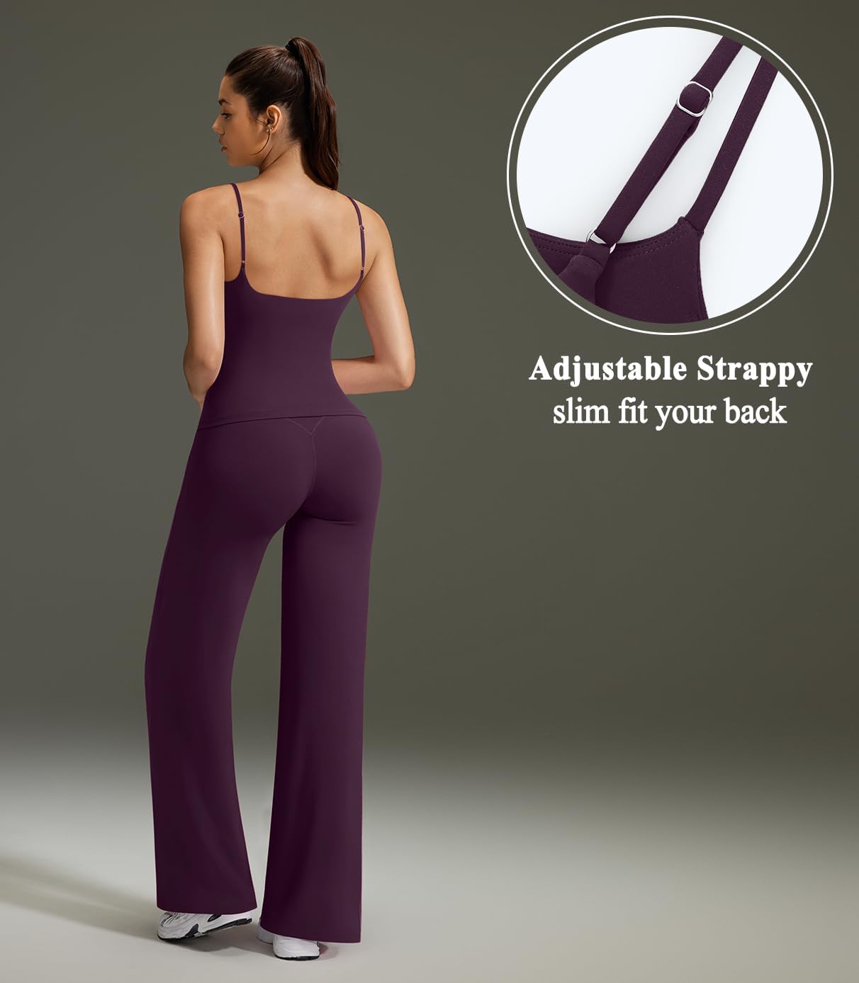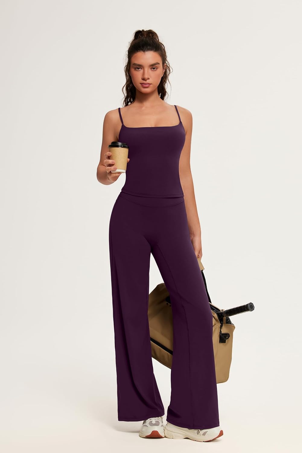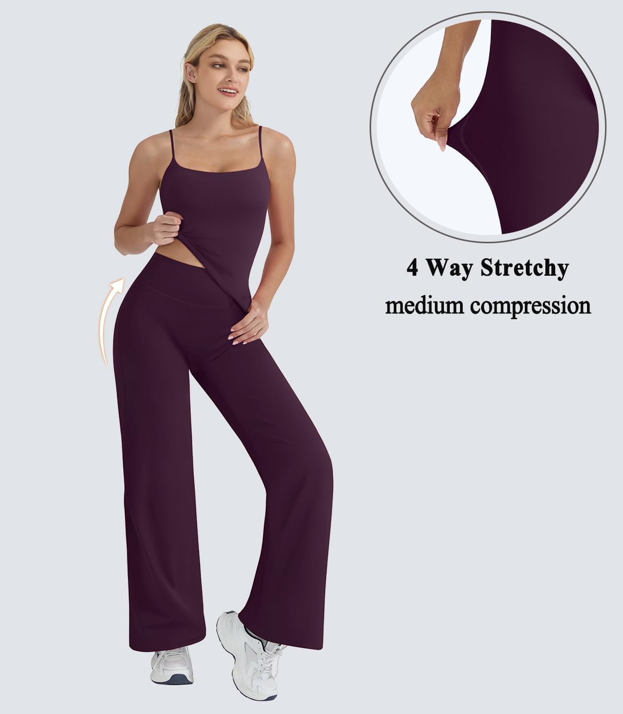 OMKAGI Workout Sets for Women Padded Tank Tops Matching Straight Leg Yoga Outfits