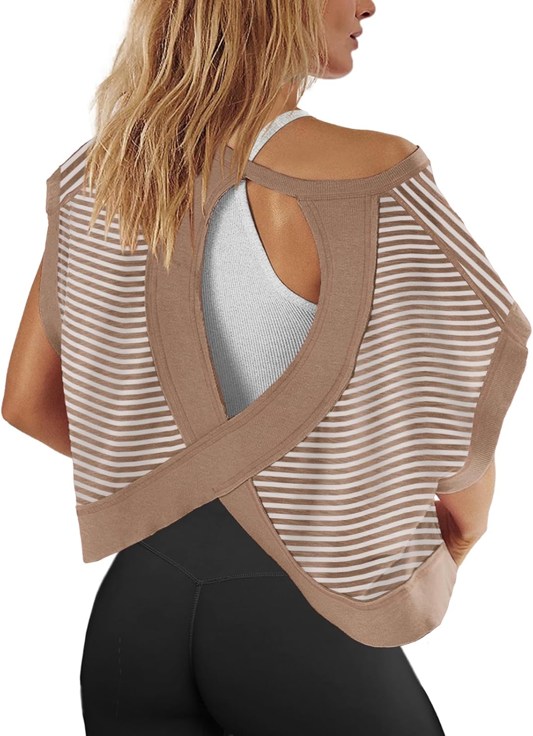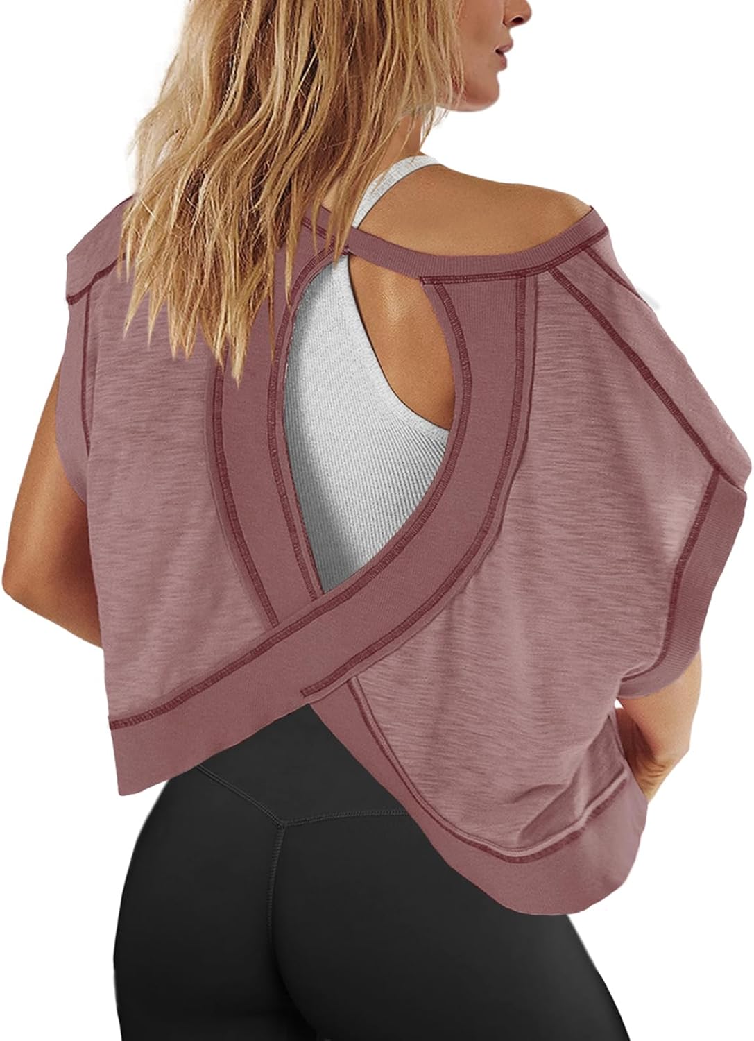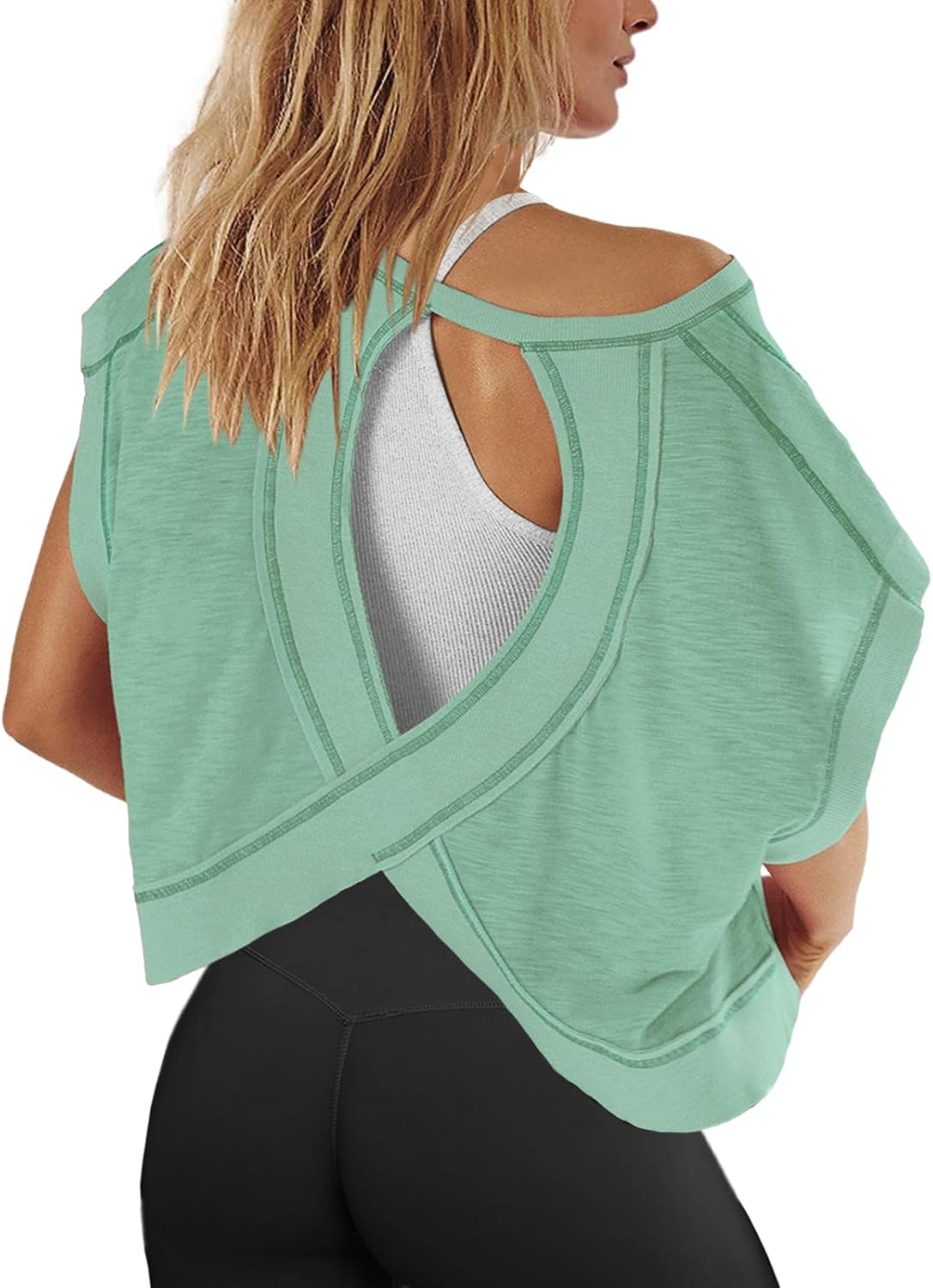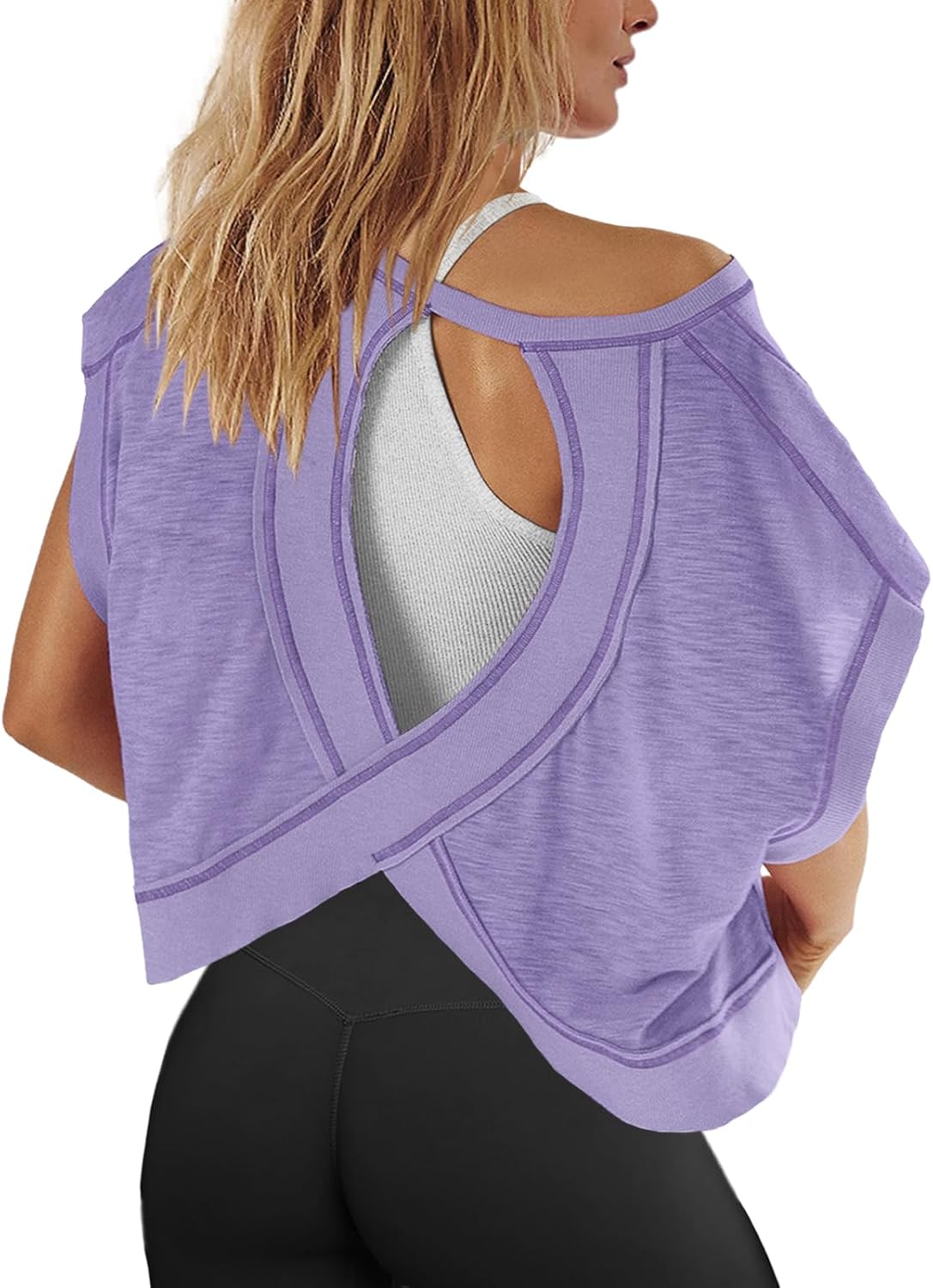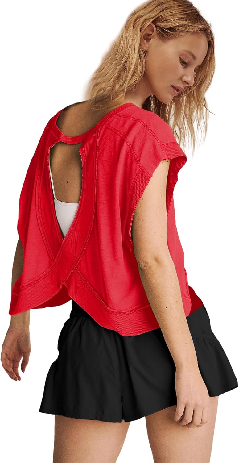 Panadila Womens Open Back Workout Top Oversized Workout T Shirts Backless Athletic Shirt Short Sleeve Baby Tee