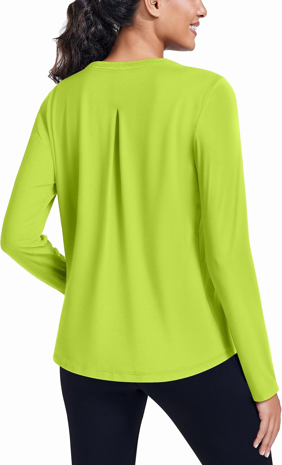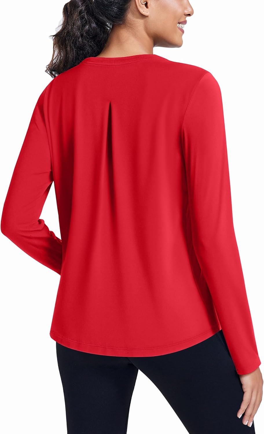 PINSPARK Workout Tops for Women Long Sleeve Athletic Shirt Soft Loose Fit Exercise Shirt with Back Pleated Pilates Yoga Tops